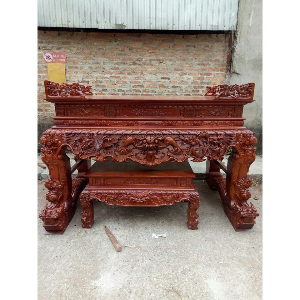 bàn thờ tứ linh gỗ mít dài 217 rộng 107 . bàn chân quỳ 24 tại mạo khê đông triều Quảng Ninh . mít