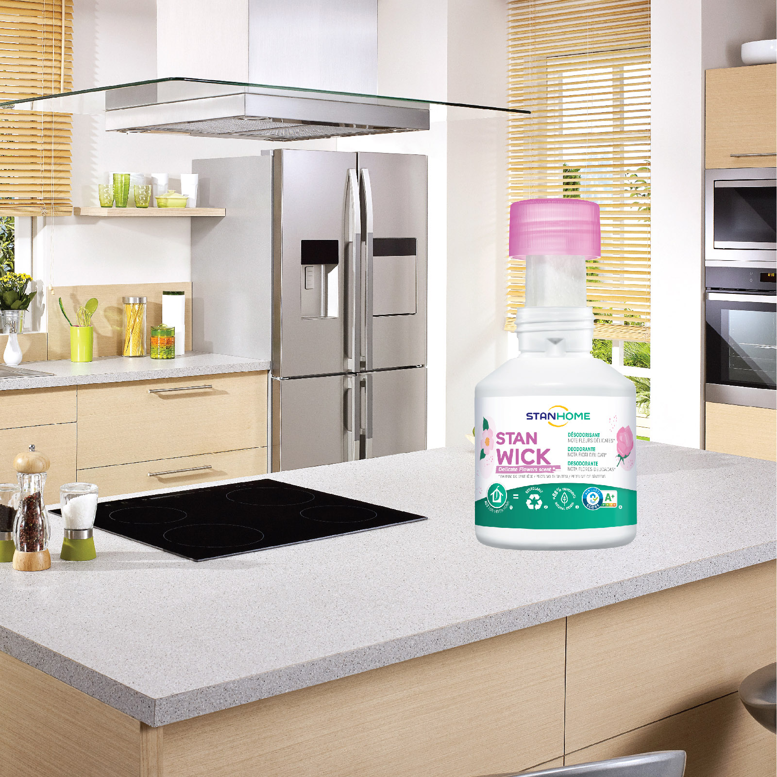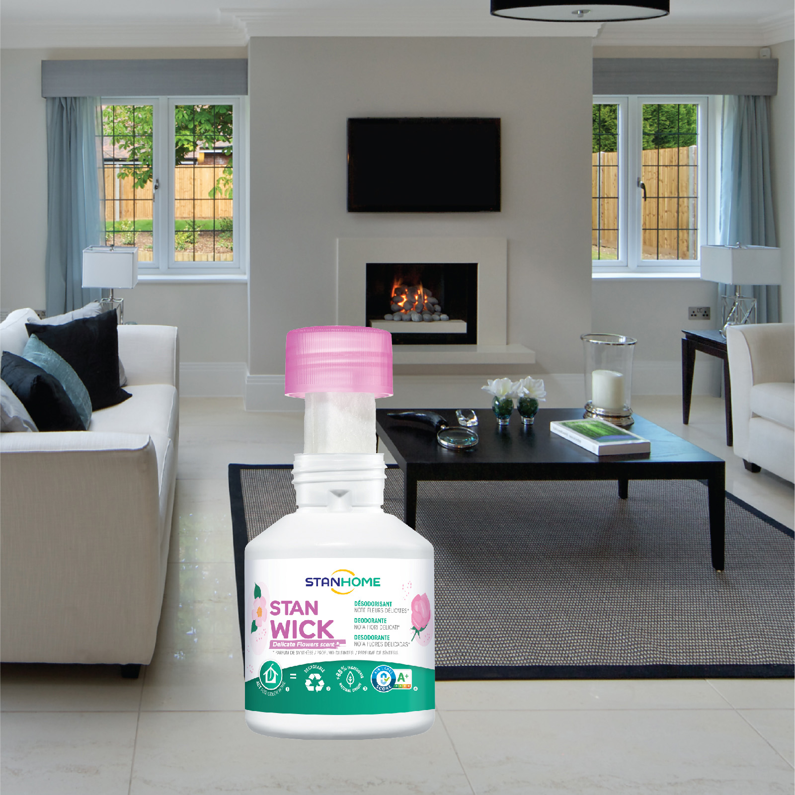 - Loại bỏ, hấp thụ và khử mùi hôi, mùi khó chịu nhờ công nghệ khử mùi được phát triển độc quyền của nhãn hàng Stanhome. Stanwich Delicate Flowers mang tới hơi thở mùa xuân ngập tràn cho không gian sống với hương hoa cỏ mùa xuân thơm mát từ những nốt hương tinh tế từ hoa hồng và hoa violet.