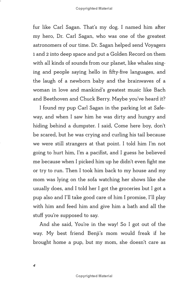 A space-obsessed boy and his dog, Carl Sagan, take a journey toward family, love, hope, and awe in this funny and moving novel for fans of Counting by 7s, Walk Two Moons, and The Curious Incident of the Dog in the Night-Time.