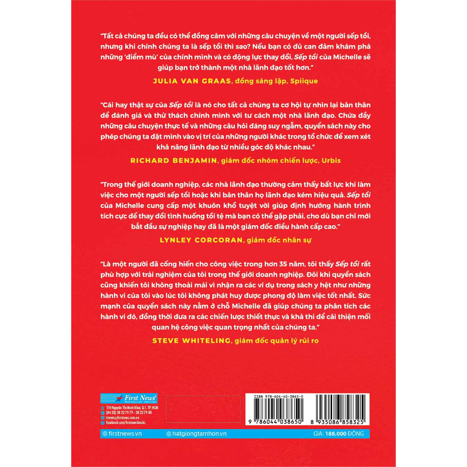 Giới thiệu tác giả Michelle Gibbings là một chuyên gia về môi trường công sở, một người tận tâm muốn tạo ra những môi trường làm việc, nơi cả cấp lãnh đạo lẫn các nhân viên đều có thể phát triển mạnh mẽ và đem đến những kết quả tích cực. Bằng niềm đam mê và sự ủng hộ tích cực dành cho các phương pháp làm việc cũng như phương pháp lãnh đạo, Michelle đã xây dựng được danh tiếng đáng chú ý với tư cách là diễn giả chủ chốt, nhà tư vấn và cố vấn điều hành được các doanh nghiệp hàng đầu và các tổ chức toàn cầu săn đón. Trước khi thành lập công ty tư vấn về công tác lãnh đạo, Michelle từng làm việc trong một số tổ chức lớn trên thế giới, hầu hết là ở các vị trí quan trọng. Bà đã từng giữ vai trò nhân viên, lãnh đạo và cả lãnh đạo cấp cao. Bà là tác giả của cuốn sách Step Up: How to build your influence at work (tạm dịch: Nâng cao: Cách xây dựng ảnh hưởng của bạn tại nơi làm việc) và cuốn Career Leap: How to reinvent and liberate your career (tạm dịch: Bước nhảy vọt nghề nghiệp: Cách đổi mới và nâng tầm sự nghiệp của bạn). Michelle thường chia sẻ kinh nghiệm của bà thông qua nhiều phương tiện truyền thông như The Sydney Morning Herald, The Australian, Australian Financial Review, Herald Sun, CEO Magazine, HR Director, Today show và nhiều kênh radio khác nhau. Giới thiệu sách Làm gì khi bạn có một người sếp tồi, phải quản lý sếp tồi, hay chính bạn là sếp tồi? Có một hiện tượng thường được phóng đại trên phim ảnh và cũng vô cùng phổ biến trong các văn phòng, nhà máy hay nơi làm việc trên thế giới – đó là tất cả chúng ta đều từng làm việc cho một người sếp tồi. Họ là người khiến bạn sợ hãi khi phải đi làm, hiếm khi đánh giá cao sự nỗ lực của bạn, và tệ hơn nữa là làm tổn thương lòng tự trọng của bạn, khiến cho cuộc đời đi làm của bạn chẳng khác gì địa ngục. Vậy phải làm gì nếu bạn đang khổ sở và kiệt sức dưới trướng của một người sếp tồi, đang phải quản lý sếp tồi, hay chính bạn là sếp tồi? Tác giả Michelle Gibbings có hàng thập kỷ lãnh đạo và làm việc với hàng trăm thành viên đội nhóm ở nhiều lĩnh vực khác nhau, và hiển nhiên, cô từng chứng kiến và kinh qua cả ba trường hợp trên. Với mong muốn hướng đến một thế giới công sở hạnh phúc hơn, Michelle Gibbings đã góp nhặt và chia sẻ những hiểu biết xương máu của mình trong cuốn sách “Sếp tồi” (tựa gốc: Bad Boss). Sách đã được đề cử vào vòng chung kết “Sách hay nhất về quản lý và nhân sự” của Úc năm 2021; đạt giải sách có bìa đẹp nhất trong nhóm sách kinh doanh Úc 2021. Tóm tắt nội dung “Sếp tồi” có cấu trúc toàn diện và cân bằng khi xem xét lãnh đạo ở cả ba vai trò (tương ứng 3 phần chính): làm việc cho một người sếp tồi, quản lý một người sếp tồi và chính mình là một người sếp tồi. Do đó, dù bạn đang ở cấp bậc nào trong tổ chức, bạn cũng sẽ nhận được những chỉ dẫn sâu sắc, cụ thể từ cuốn sách. Đồng thời, bạn cũng có thể xem xét câu chuyện lãnh đạo từ nhiều điểm nhìn khác nhau. Với mỗi phần, Michelle Gibbings đều định hướng bạn đọc đi qua 4 bước: Đánh giá tình hình → Lập chiến lược → Hành động → Chiêm nghiệm. Trong phần 1, tác giả sẽ đồng hành với những nhân viên đang đối phó với một người sếp tồi, hướng dẫn họ cách xem lại các động lực, hoàn cảnh của bản thân nơi công sở; đồng thời tìm hiểu những nhu cầu, động lực lẫn áp lực mà sếp của họ đang trải qua. Theo Michelle, những nhân sự dưới trướng người sếp tồi sẽ cần hành động dũng cảm, đôi khi phải trải qua “những khoảnh khắc trên đấu trường”, chẳng hạn như tham gia những cuộc trò chuyện khó nhằn với sếp, làm rõ các kỳ vọng, từ chối nhận thêm việc và đặt ra những yêu cầu cần thiết… Những bí quyết đàm phán thành công với sếp cũng được tác giả tiết lộ trong phần này. Trong phần 2, Michelle Gibbings giúp những “sếp của sếp” có một định hướng rõ ràng trong trường hợp cấp dưới trực tiếp của họ đang lãnh đạo không hiệu quả. Việc này bắt đầu với chiến lược đánh giá cấp dưới bằng những nguồn thông tin chính thức lẫn không chính thức, sau đó xác định cách giải quyết vấn đề dựa trên nhiều phương diện liên quan đến sếp, nhân viên lẫn môi trường làm việc. Tác giả cuốn sách cũng đưa ra nhiều công cụ giúp các nhà lãnh đạo cấp cao đánh giá nỗ lực của cấp dưới trực tiếp để từ đó đưa ra những quyết định vừa nhân văn với mỗi cá nhân, vừa không làm suy hại lợi ích chung của cả tập thể. Phần 3 của sách giải quyết câu hỏi: “Nếu chính tôi là người sếp tồi thì phải làm thế nào?”. Phần này sẽ giúp bạn hiểu rõ hơn về hành vi lãnh đạo của mình và kiểm tra xem những gì bạn nghĩ về năng lực lãnh đạo của mình có đúng với tác động thực tế mà bạn tạo ra hay không. Miche