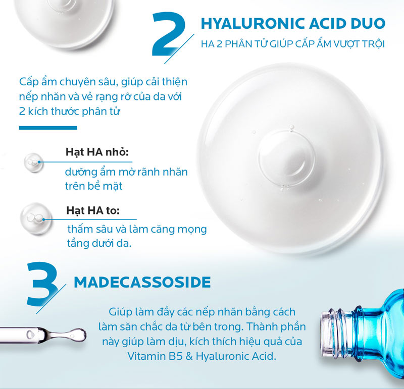 Serum Dưỡng Mắt La Roche-Posay Hyalu B5 Yeux Anti-Rides 15ml   Serum Hyalu B5 Eyes với phức hợp axit hyaluronic và Vitamin B5 làm mịn nếp nhăn và làm tròn đường viền mắt giúp các nếp gấp xung quanh viền da mắt. Serum giúp tinh chỉnh và làm mới làn da cho một cái nhìn rạng rỡ đôi mắt mệt mỏi. Serum Hyalu B5 Eyes để lại vẻ ngoài tươi mới và da mắt căng mịn hơn. Nhờ kết cấu kem mỏng thấm nhanh có thể sử dụng làm kem lót trước trang điểm cho vùng da mắt.   Serum Dưỡng Mắt La Roche-Posay Hyalu B5 là dòng serum chuyên biệt của thương hiệu La Roche-Posay, với hoạt chất Hyaluronic Acid Duo giúp dưỡng ẩm chuyên sâu cho vùng mắt, cho da mắt căng mịn; Vitamin B5 làm dịu & bảo vệ da; Madecassoside cải thiện làn da mắt hư tổn nhanh chóng   Kết cấu serum cực nhẹ, thẩm thấu nhanh vào da và không hề gây nhờn rít. Chỉ sau một thời gian sử dụng, da sẽ trở nên mịn màng, ẩm mượt và rạng rỡ hơn.   Sản phẩm đã được kiểm nghiệm bởi bác sĩ da liễu, tuyệt đối lành tính cho da, kể cả da nhạy cảm.       Loại da phù hợp: Sản phẩm thích hợp với với mọi loại da, kể cả da nhạy cảm.   Giải pháp cho tình trạng da:   Vùng da mắt khô, thiếu độ ẩm, mất đi sự đàn hồi & độ săn chắc. Da có nếp nhăn mảnh vùng mắt do thiếu độ ẩm   Da nhạy cảm, kích ứng.   Thích hợp sử dụng sau các liệu trình chăm sóc thẩm mỹ.     Hướng dẫn sử dụng:   Sử dụng vào buổi sáng & tối sau bước làm sạch.     Ưu thế nổi bật: Serum có thanh lăn bi giúp massage kích thích tuần hoàn máu, làm mát lạnh giúp thư giãn vùng mắt.   HYALURONIC ACIDS DUO nguyên chất với kích thước khác nhau giúp cải thiện nếp nhăn và vẻ rạng rỡ của da   Kích thước phân tử to – dưỡng ẩm mờ rãnh nhăn trên bề mặt.   Kích thước phân tử nhỏ – thấm sâu và làm căng mọng tầng dưới da.   Làm dịu và hỗ trợ phục hồi da với Vitamin B5, đồng thời kích thích sự tái tạo và sức đề kháng của da, mang lại làn da khỏe mạnh.   Làm đầy các nếp nhăn bằng cách làm săn chắc da từ bên trong với Madecassoside. Đồng thời, thành phần này còn giúp làm dịu, kích thích hiệu quả của Vitamin B5 & Hyaluronic Acid.   Làn da mắt được phục hồi, mang lại cảm giác căng mịn và trông rạng rỡ hơn. Nếp nhăn trên da đồng thời được cải thiện.   Kết cấu dạng serum lỏng, nhẹ, thẩm thấu nhanh, không gây nhờn rít.     Độ lành tính: Không gây kích ứng da.   Được kiểm nghiệm bởi bác sĩ da liễu trên làn da nhạy cảm.   Không gây nhân mụn trứng cá.     Bảo quản: Tránh ánh nắng trực tiếp.   Để nơi khô ráo, thoáng mát.   Đậy nắp kín sau khi sử dụng.     Thông số sản phẩm:   Dung tích: 15ml   Thương hiệu: La Roche-Posay   Xuất xứ thương hiệu: Pháp   Sản xuất tại: Pháp