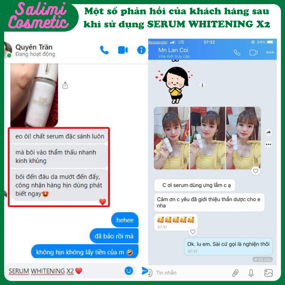 Mua tại TiktokPhụ nữ châu Á vốn thích làn da trắng sứ mịn màng, bởi nó mang lại nhiều lợi ích nhất định, không chỉ đơn thuần là vẻ ngoài kể cả da toàn thân và da mặt. Da mặt trắng đã trở thành xu hướng làm đẹp phổ biến. Với sản phẩm Whitening Serum X2, phái đẹp tự tin bắt kịp xu hướng và tỏa sáng rạng ngời với da mặt trắng hồng rạng rỡ.