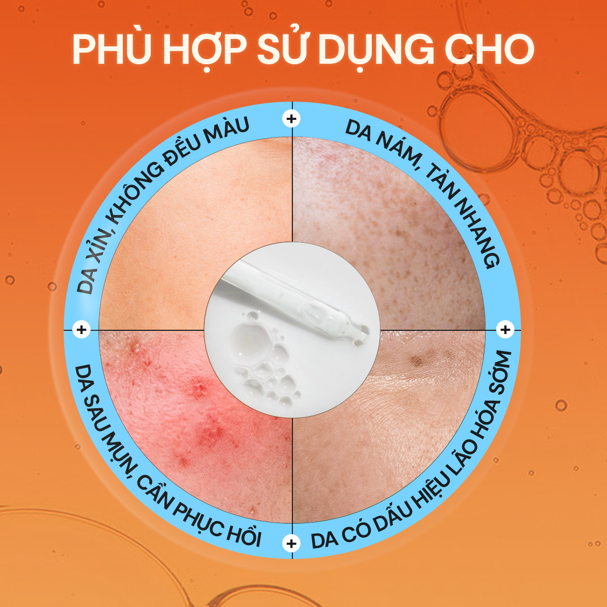 Công dụng: - Dưỡng da trắng sáng, căng mịn, đều màu - Cải thiện da tăng sắc tố, sạm và nám, hiệu quả từ 6 tuần - Mờ vết thâm do mụn, hiệu quả từ