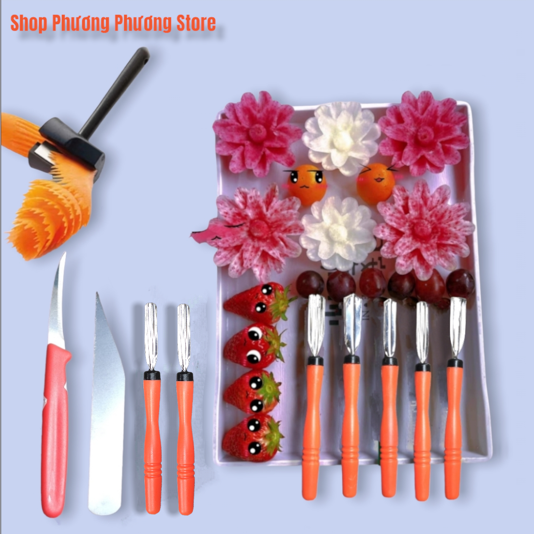Mua tại TiktokSét 10 món dụng cụ - dao tỉa hoa quả nghệ thuật cao cấp ( tặng kèm giấy mài )