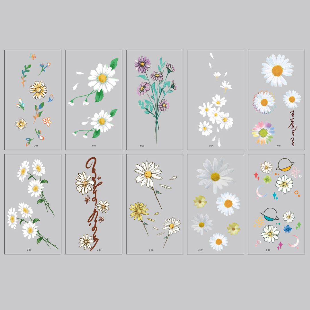 ✨Set 10 Tờ Hình Xăm Dán 8 Ngày Chống Nước Lâu Trôi Hoa Cúc Họa Mi, Mặt Trăng, Trái Đất Thời Trang Legaxi