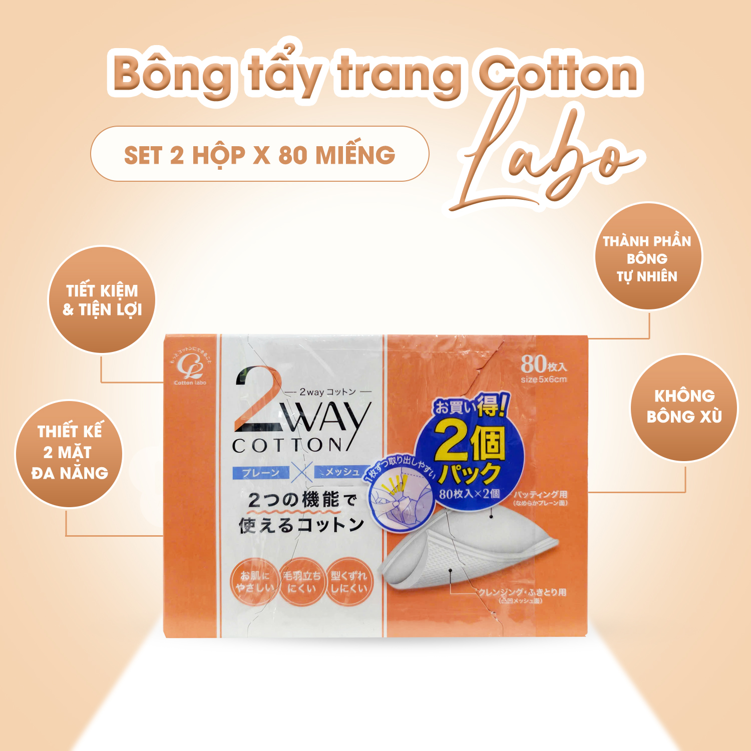 ✨Set 2 Hộp Bông Tẩy Trang Cao Cấp Cotton Labo 2 Way (80 Miếng/Hộp)