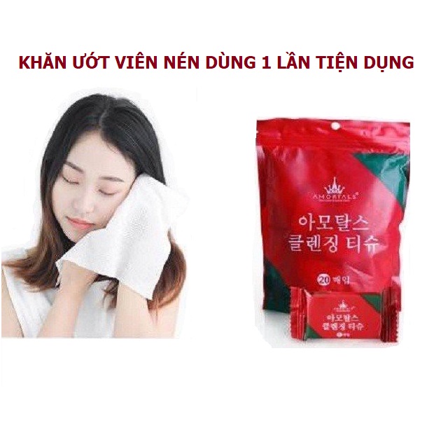 khách hàng lựa chọn 1 viên hoặc 1 gói (20 viên) Khăn ướt viên nén (Viên hình tròn)