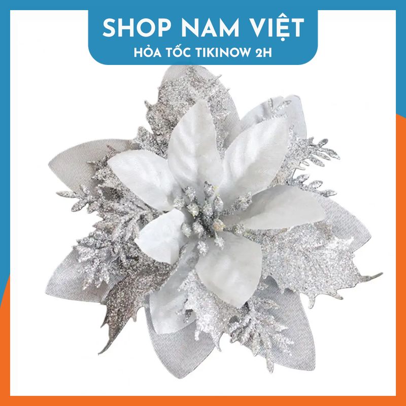 Đóng gói: Set 3 bông hoa kim tuyến cỡ 15cm. ️ Tính năng Hoa nhân tạo với màu sắc tươi tắn và không bị phai theo thời gian. Có cánh kim tuyến để tăng sự lấp lánh. Trang trí nhà cửa, cây thông giáng sinh. ️ Thông số Chất liệu: nhựa, vải không dệt. Kích thước: 15cm.