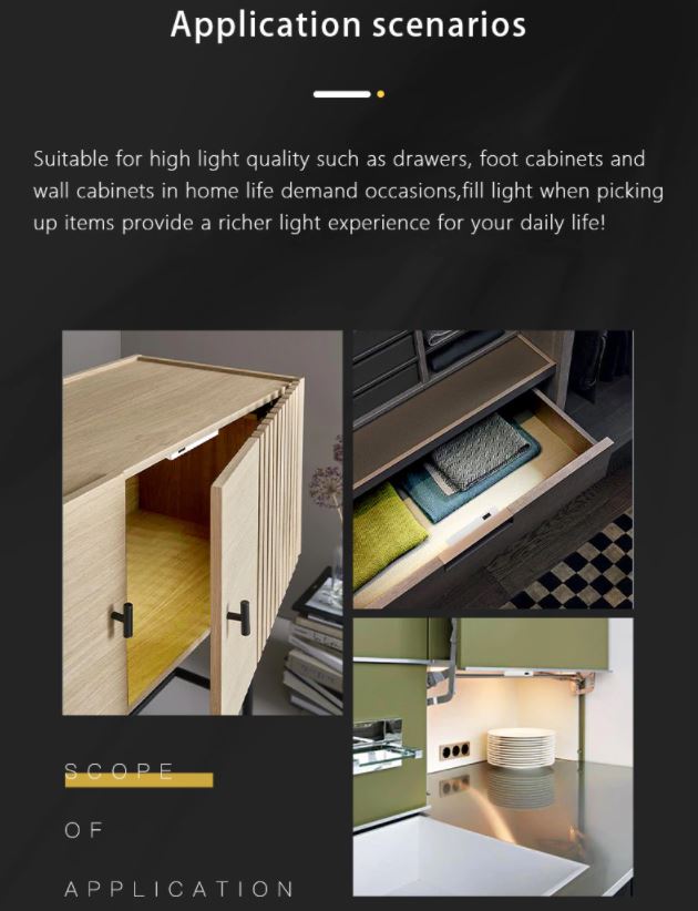 Bạn đang tìm kiếm một phụ kiện ngăn kéo thiết thực sẽ tạo thêm nét thanh lịch cho căn phòng của bạn? Yeelight Drawer Light sẽ là sự lựa chọn hoàn hảo! Đèn có cảm biến nên sẽ bật sáng khi bạn mở tủ, ngăn kéo hoặc ngăn tủ. Bạn cũng không phải lo lắng về việc hết pin nhanh chóng. Phụ kiện sẽ tự động tắt sau 3 giây, và nhờ pin bền mà vẫn ở chế độ chờ lên đến 2 ~ 4 tháng! Drawer Light cũng có sẵn để bán trong một bộ 4 miếng. =>>> Gắn kết nơi bạn muốn Đèn sẽ hoạt động tốt cho các ngăn kéo, tủ, tủ,… Có rất nhiều khả năng! Cảm biến IR tích hợp giúp đèn tự động bật khi bạn mở tủ và tắt sau 3 giây sau khi đóng. Ánh sáng Yeelight sẽ không chỉ giúp bạn xác định vị trí món đồ đã chọn dễ dàng hơn mà nó còn là một vật trang trí thú vị. =>>> Cài đặt nhanh chóng và dễ dàng Việc lắp đặt đèn không cần thêm dụng cụ và rất đơn giản. Bạn chỉ cần dán khung vào vị trí mong muốn rồi đặt đèn vào đó. Xin lưu ý rằng đầu dò của cảm biến hồng ngoại phải hướng lên trên hoặc ra ngoài. =>>> Thời gian làm việc thỏa đáng Drawer Light sẽ khiến bạn bất ngờ với thời gian làm việc lâu dài. Dung lượng pin tích hợp của thiết bị này là 300mAh nên đèn có thể ở chế độ chờ từ 2 ~ 4 tháng (nếu sử dụng 3 lần / ngày). Bạn có thể sạc đầy pin sau một giờ bằng cáp USB-C. =>>> Thiết kế chu đáo Với nút nằm ở góc trên bên trái, bạn có thể tùy chỉnh hoạt động của phụ kiện. Để bật / tắt Đèn ngăn kéo, chỉ cần nhấn nút. Đèn cũng có chế độ tự động, khi đó đèn báo hiệu màu xanh lam. =>>> Thiết kế đơn giản Thiết kế mỏng của đèn với độ dày chỉ 11 mm cho phép bạn đặt đèn ngay cả trong tủ hoặc ngăn kéo rất nhỏ. Tuy nhiên, màu trắng của đèn mang lại cho nó một đặc điểm chung và làm cho nó phù hợp với hầu hết mọi nơi! =>>> Thông số kỹ thuật Màu Sắc sản phẩm: Trắng, xám bạc Kích Thước sản phẩm (mm): 682611 Nhiệt Độ màu: 2700K Quang Thông: Khoảng 15Im Định mức Đầu Vào: 5V DC / 0.5A Công Suất định mức: 0.15W (dưới TẢ môi trường, theo Định mức điện áp đầu vào điều kiện) Dòng Điện chờ: 0.12mA Thông thường Mở: ≥ 6 giờ; Thời Gian làm việc: TỰ ĐỘNG: 2-4 tháng (tính bằng cách sử dụng cảm biến để bật đèn 3 lần một ngày) Dung Lượng Pin: 300 mAh Điện Áp mặc định: 3.7V Sạc và Xả Nhiệt Độ: 0-45 ℃ Trọng Lượng (g): 25