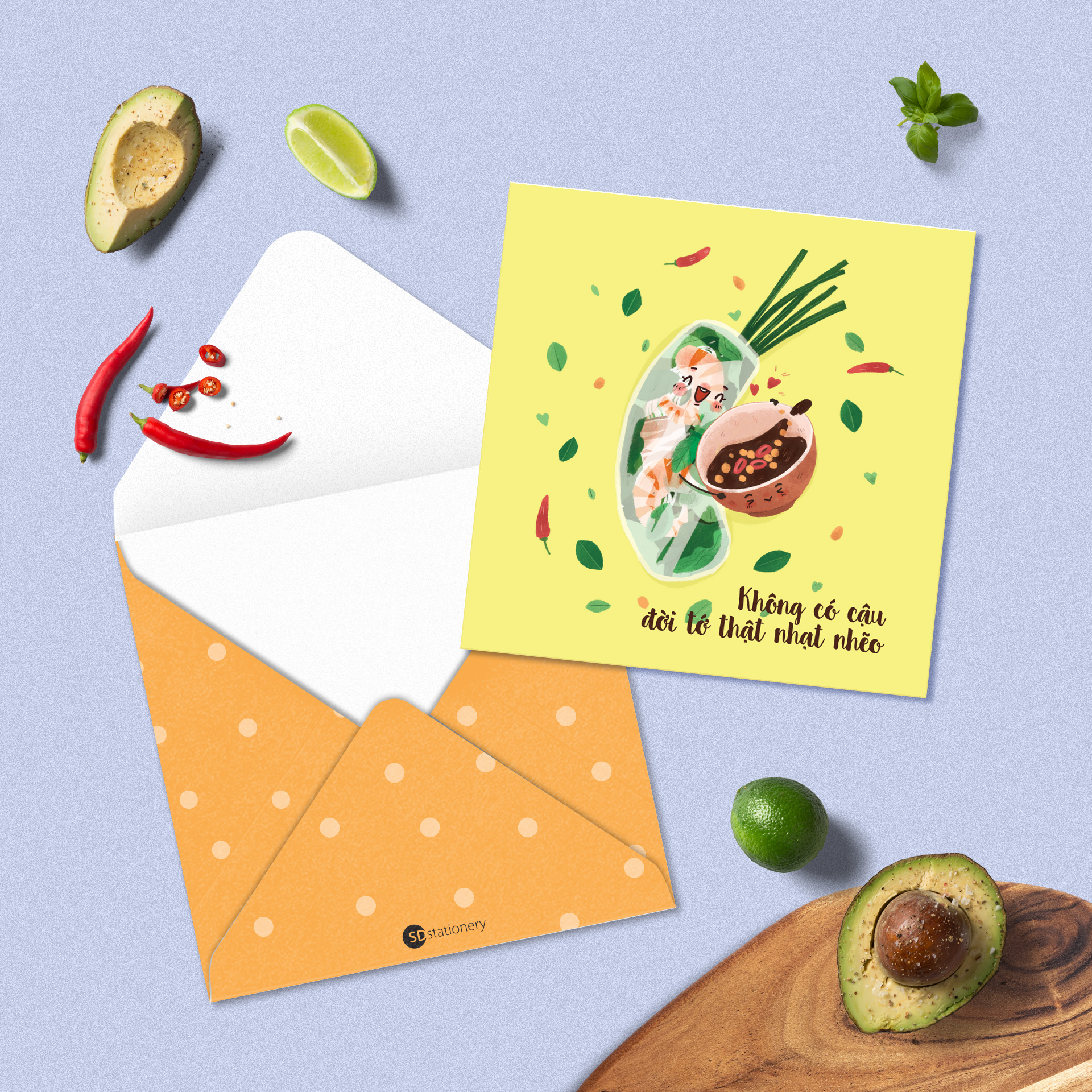 Mua tại TiktokThiệp VUI CÓ ĐÔI của SDstationery mang hình minh họa dễ thương với những món ăn Việt thân quen nhà nhà đều mê, kết hợp cùng những thông điệp thả thính thông minh, dí dỏm. Thiệp là sứ giả tuyệt vời để bạn gửi tâm tư đến crush hay người yêu các dịp Valentine, kỷ niệm, tỏ tình…