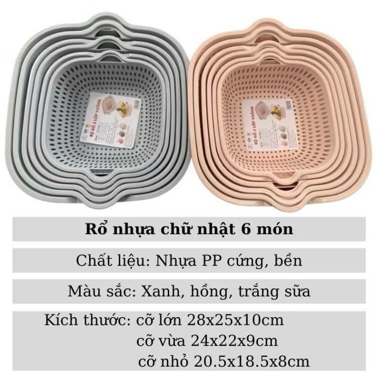 Set Rổ 6 Món Gồm 3 Rổ 3 Chậu - Bộ Rổ Nhựa Vuông 6 Món Kèm Chậu Ráo Nước Hai Lớp Cao Cấp (3 Rổ 3 Chậu Màu Ngẫu Nhiên) Chất liệu: Nhựa ABS