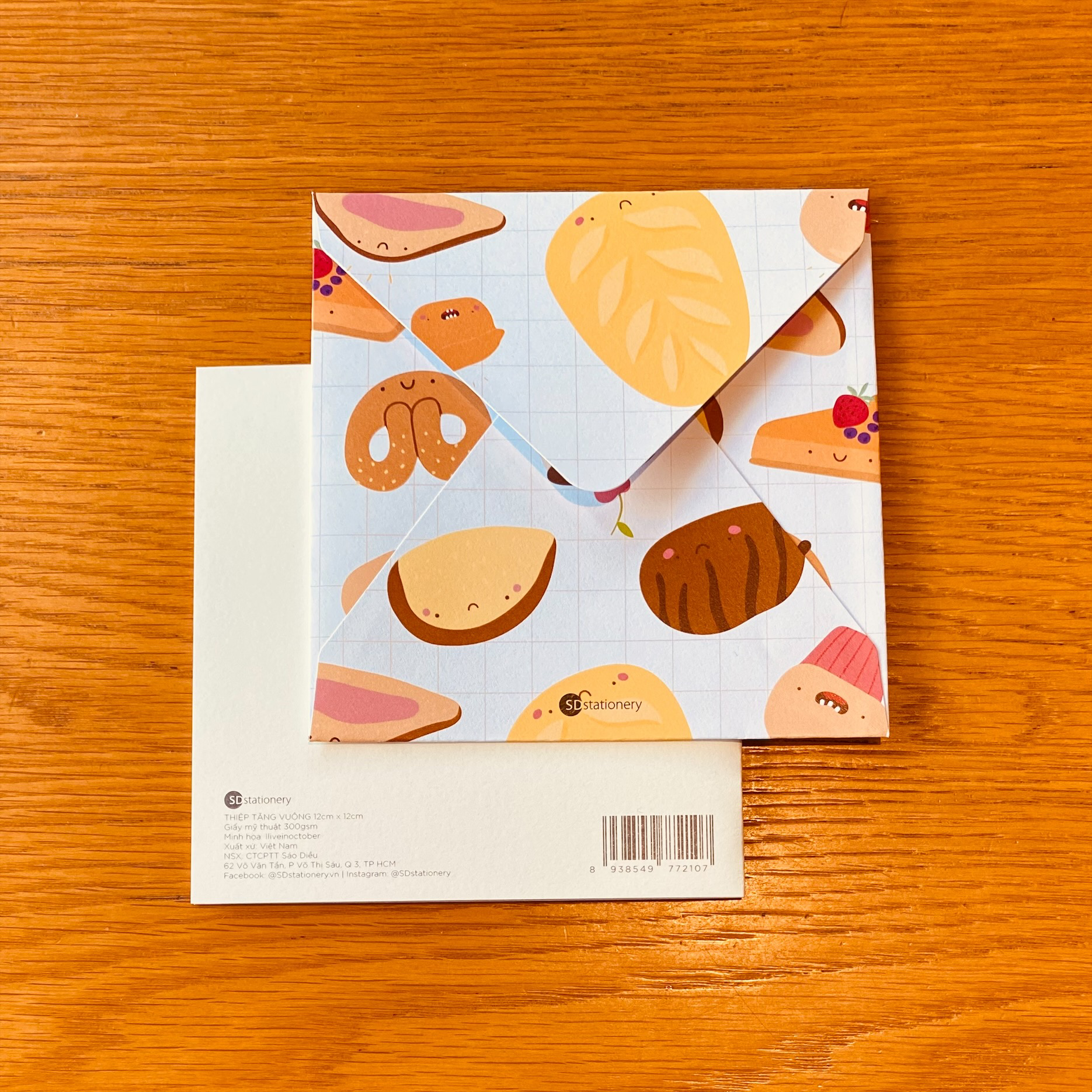 ✨Set 6 thiệp tặng bạn bè, chúc mừng, chúc may mắn, động viên SDstationery TASTY TREAT 12x12 minh họa dễ thương cute cho tâm hồn ăn uống