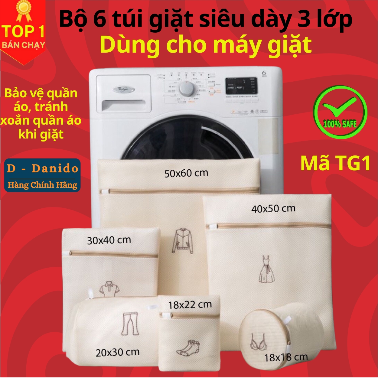 Bộ 6 túi giặt TG1 siêu dày 3 lớp cao cấp Combo 5 túi lưới bảo vệ quần áo Dùng cho máy giặt siêu bền tiện dụng Hàng chính hãng