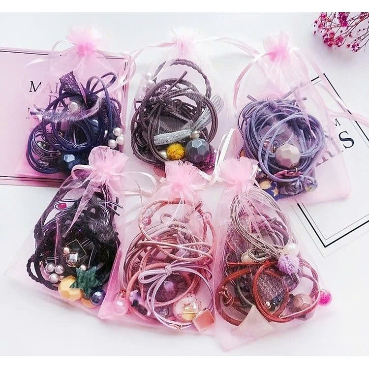 ✨Sét 9 dây buộc tóc và kẹp xinh xắn, có kèm túi lưới phong cách Hàn Quốc, giao màu ngẫu nhiên