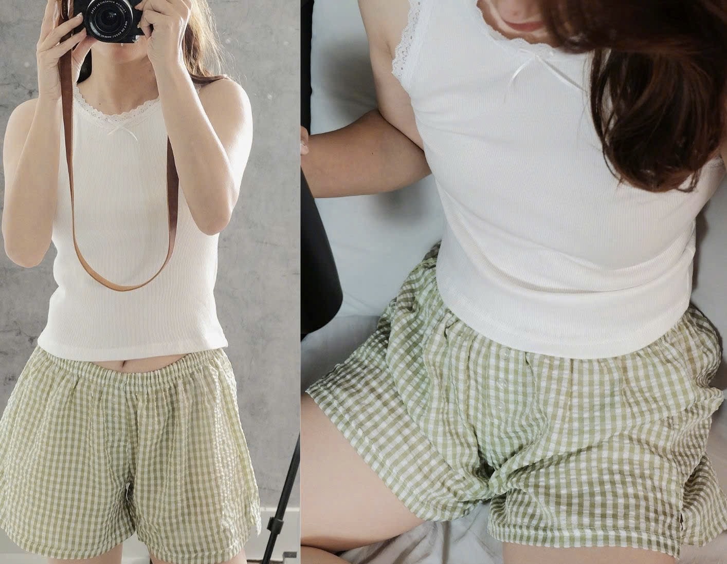 Thương hiệu: Sanny House Tên sản phẩm: Bộ đồ ngủ Chất liệu: cotton cao cấp mềm mịn, co giãn, thấm hút tốt Kiểu dáng: gợi cảm, trẻ trung, hiện đại Màu: trắng caro đỏ Size: