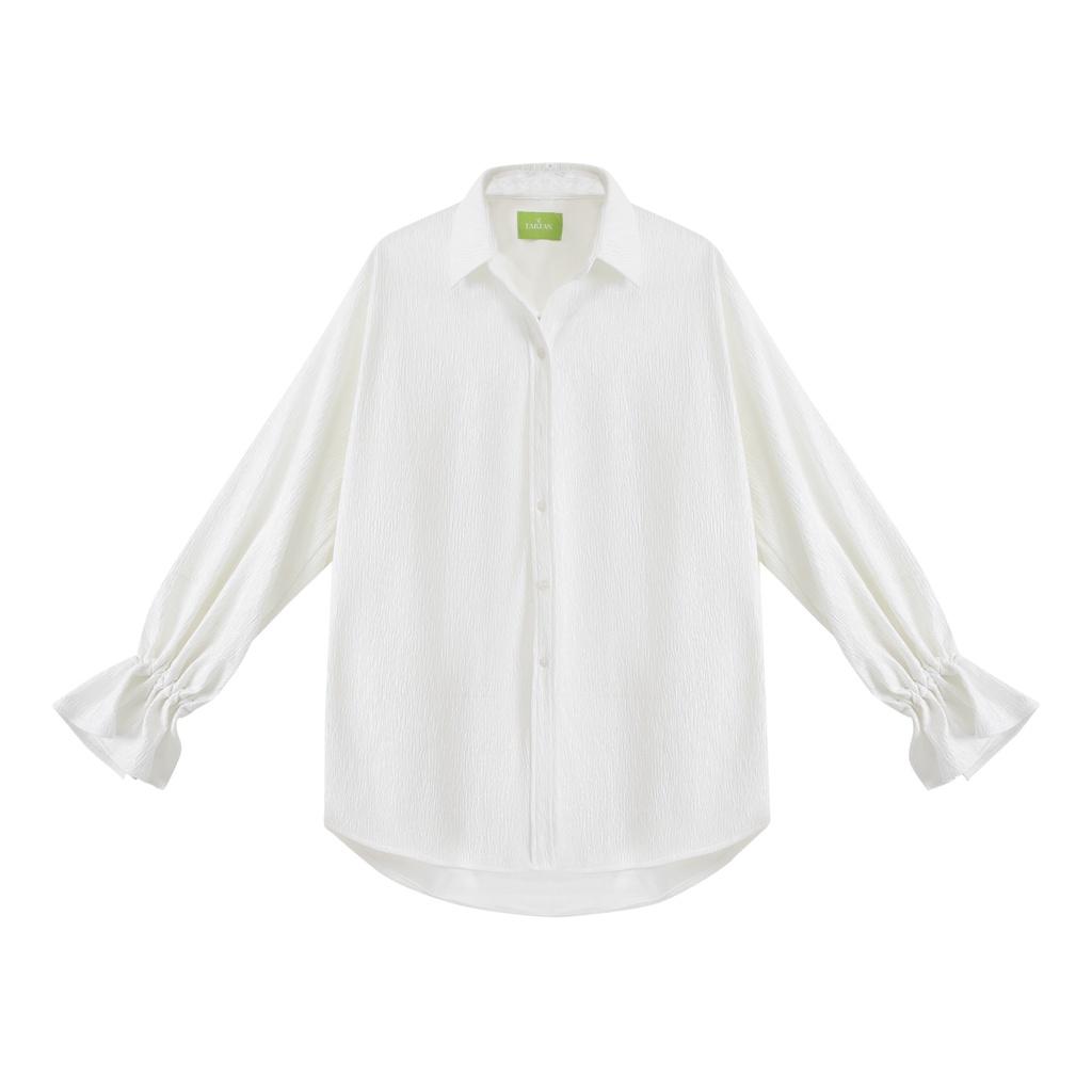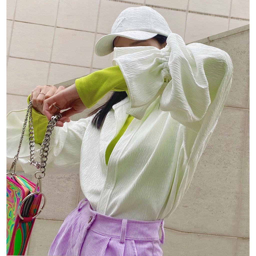 Mua tại Tiktok- Detail chính ở phần cutout mặt sau áo sơ mi, và nhúng thun ở phần tay áo ———— : . ( : @.