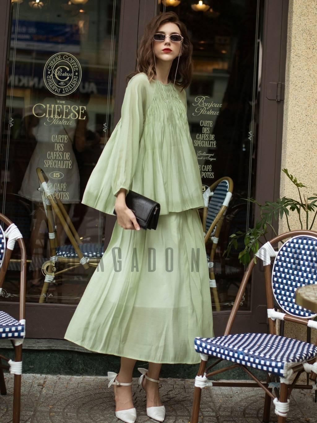 ✨Set áo váy xanh tay dài NGADO