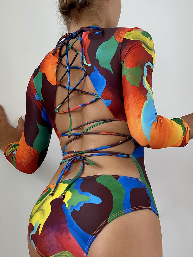 Đồ bơi nữ Bikini nữ 1 mảnh áo tắm dài tay liền thân LM004