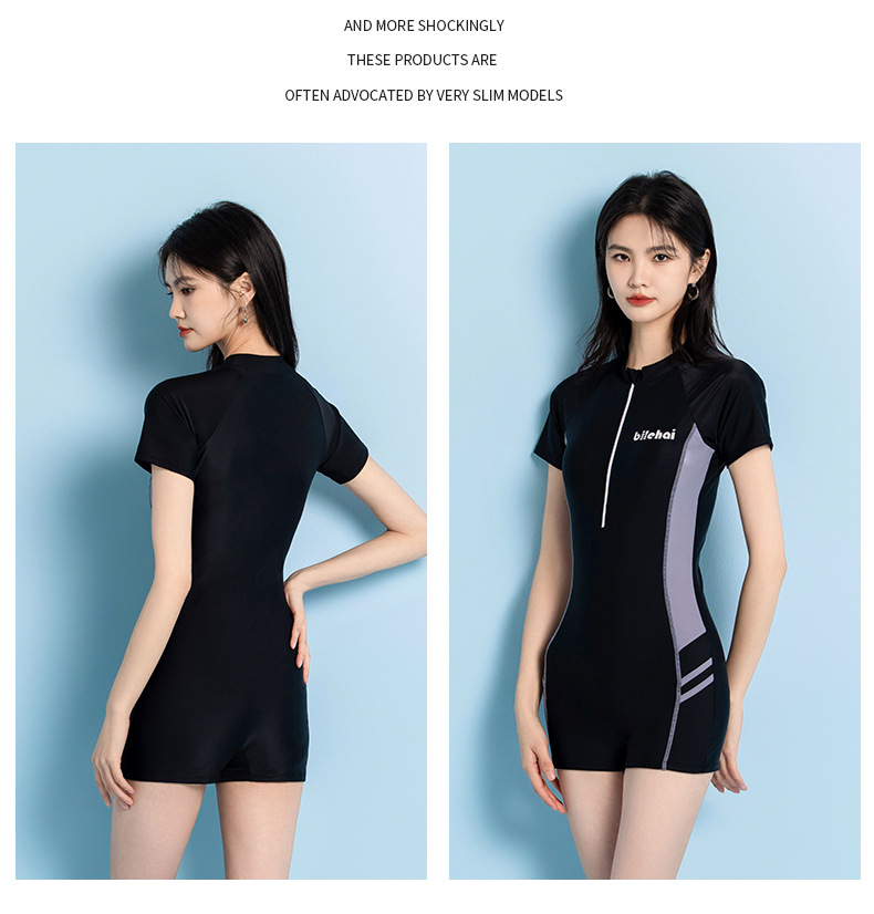 *****THÔNG TIN SẢN PHẨM - Tên sản phẩm: Bộ đồ bơi nữ kéo khoá ,áo tắm biển dài tay quần short 2 lớp chất thun lạnh cao cấp - Chất liệu: Thun lạnh, co giãn