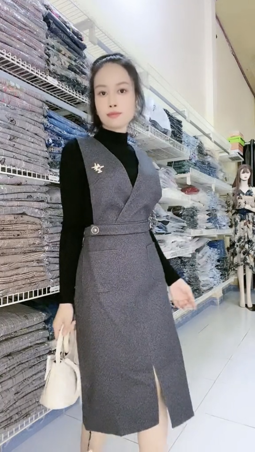 ✨Set đầm yếm kèm áo dệt kim thu đông cao cấp Myqlothing.