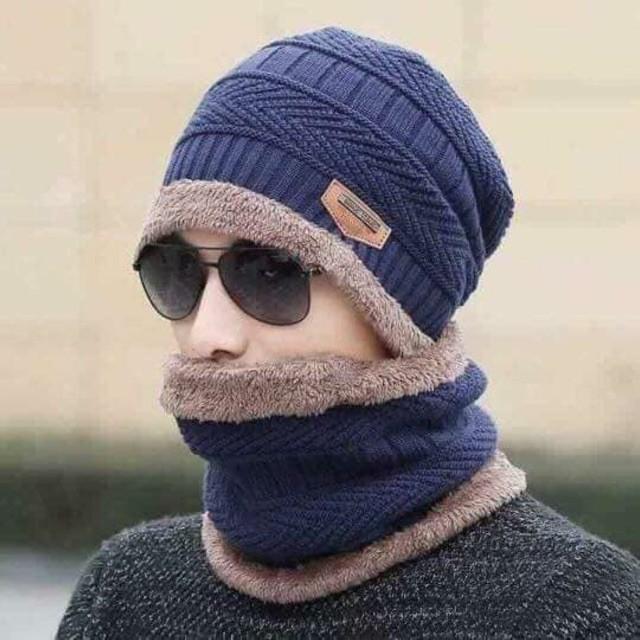 SET KHĂN ỐNG + MŨ LEN lót lông cho nam Năm nay dự đoán là siêu lạnh nên các anh sắm dần đi là vừa Combo 2in1 gồm khăn - mũ Khăn ống lót lông