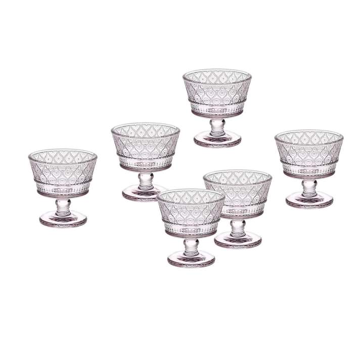 Sét bao gồm 8 ly kem đường kính 8,5cm cao 8 cm Tuyệt vời để phục vụ món tráng miệng kem, chè, hoa quả, Chất liệu: Pha lê không chì màu hồng mang đến sự