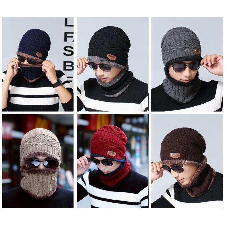 Mũ len kèm khăn ống quàng cổ lót lông dày dặn giữ ấm cho mùa đông