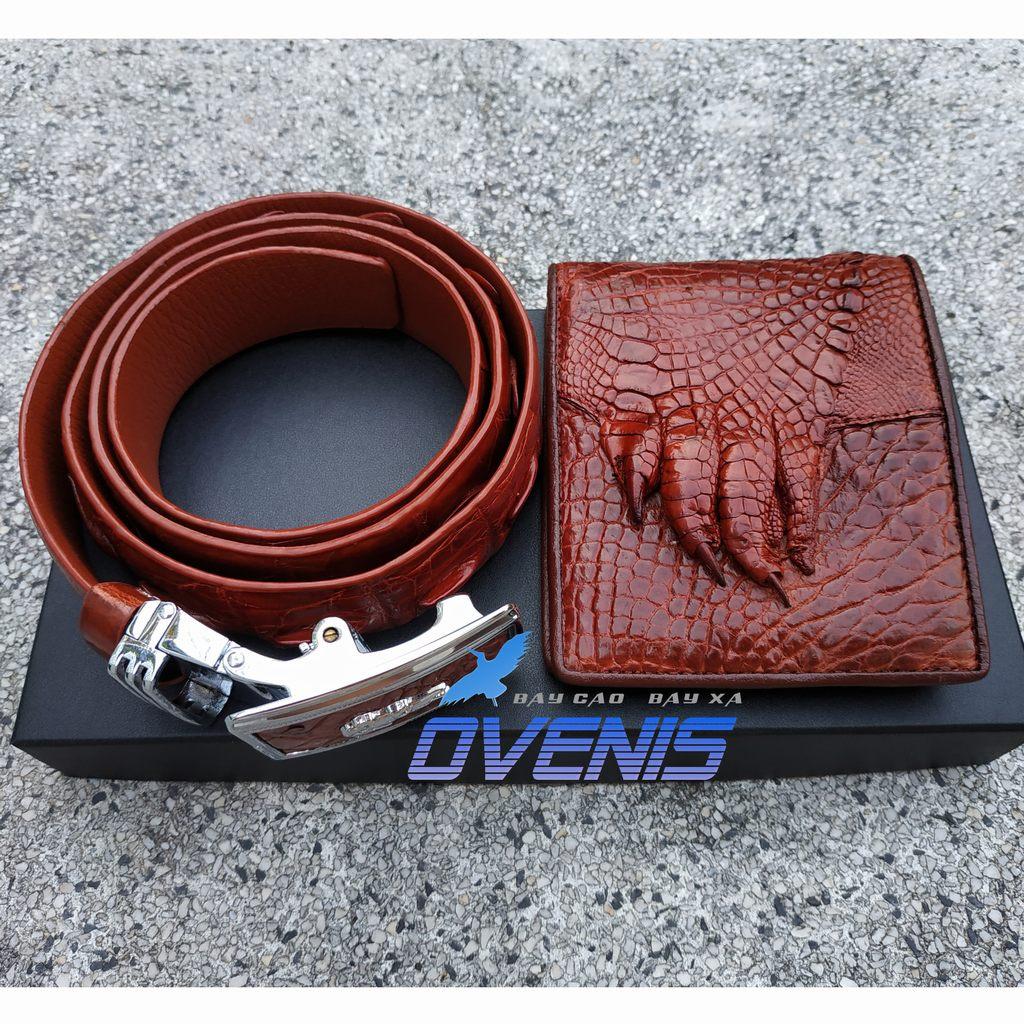 ✨Set Ví và Thắt Lưng Cá Sấu [VÍ BÀN TAY + NỊT DA HÔNG TRƠN] SET5