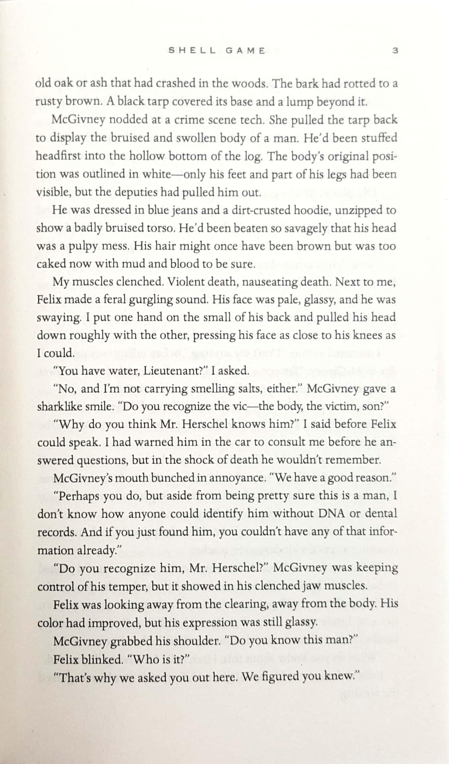 In Shell Game, nothing and no one are what they seem, except for the detective herself, who loses sleep, money, and blood, but remains indomitable in her quest for justice.