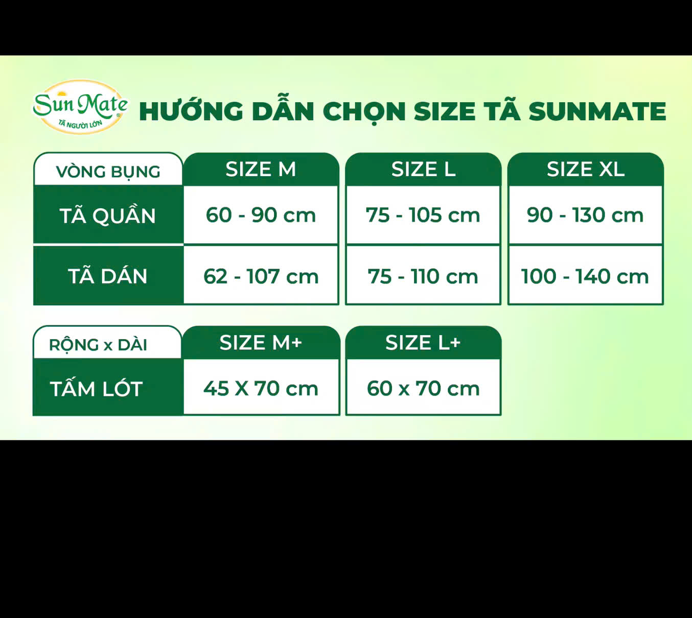Tã dán người lớn SunMate Tã người lớn Sunmate kết nối tình yêu thương của con cháu dành cho bố mẹ, ông bà. Sản phẩm tã dán dành cho cả nam và nữ, phù hợp