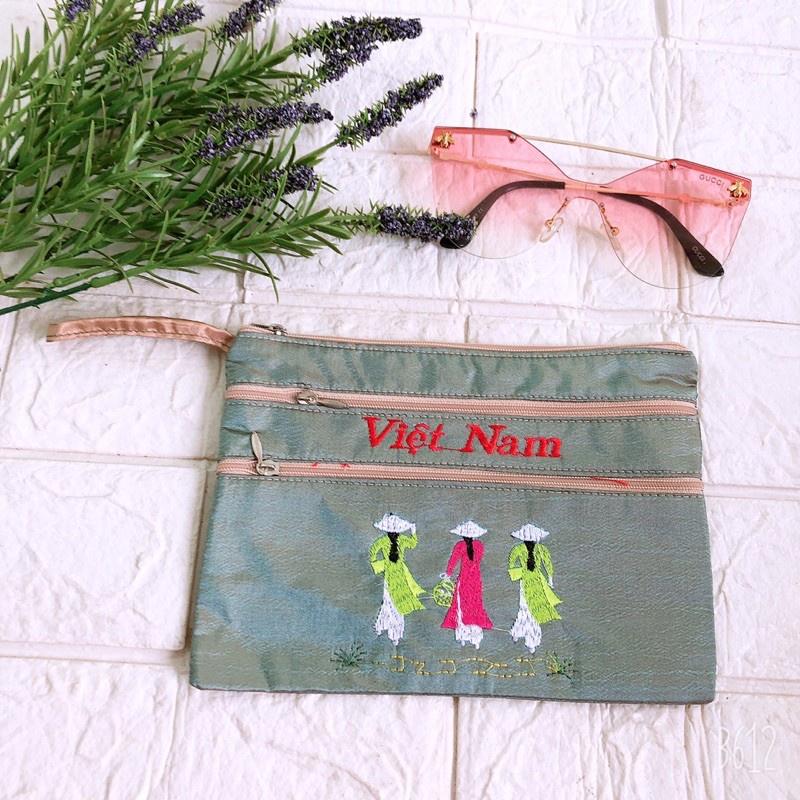 ✨(Siêu Sale) Ví lụa thêu cô gái Việt Nam