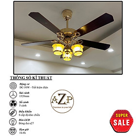 Siêu Sales QUẠT TRẦN AZP- 5 CÁNH GỖ, CÔNG XUẤT 50W, CÓ REMOTE- Hàng Nhập Khẩu Động cơ: DC - 50W - Tiết kiệm điện Sải Cánh: 1360MM Chất Liệu Cánh: gỗ thật Điều khiển: