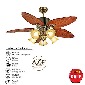 Siêu Sales QUẠT TRẦN AZP- 5 CÁNH GỖ, CÔNG XUẤT 50W, CÓ REMOTE- Hàng Nhập Khẩu Động cơ: DC - 50W - Tiết kiệm điện Sải Cánh: 1360MM Chất Liệu Cánh: gỗ thật Điều khiển: