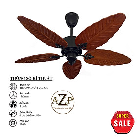 Siêu Sales QUẠT TRẦN AZP- 5 CÁNH GỖ, CÔNG XUẤT 50W, CÓ REMOTE- Hàng Nhập Khẩu Động cơ: DC - 50W - Tiết kiệm điện Sải Cánh: 1360MM Chất Liệu Cánh: gỗ thật Điều khiển: