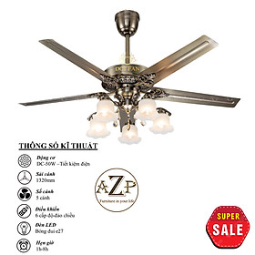 Siêu Sales QUẠT TRẦN AZP- 5 CÁNH KIM LOẠI, CÔNG XUẤT 50W, CÓ REMOTE- Hàng Nhập Khẩu Động cơ: DC - 50W - Tiết kiệm điện Sải Cánh: 1360MM Chất Liệu Cánh: kim loại Điều