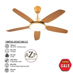 Siêu Sales QUẠT TRẦN AZP- 5 CÁNH GỖ, CÔNG XUẤT 50W, CÓ REMOTE- Hàng Nhập Khẩu Động cơ: DC - 50W - Tiết kiệm điện Sải Cánh: 1360MM Chất Liệu Cánh: gỗ thật Điều khiển: