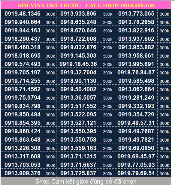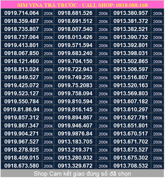- Chọn số theo danh sách trên hình sản phẩm, giá sim tương ứng có trong hình.