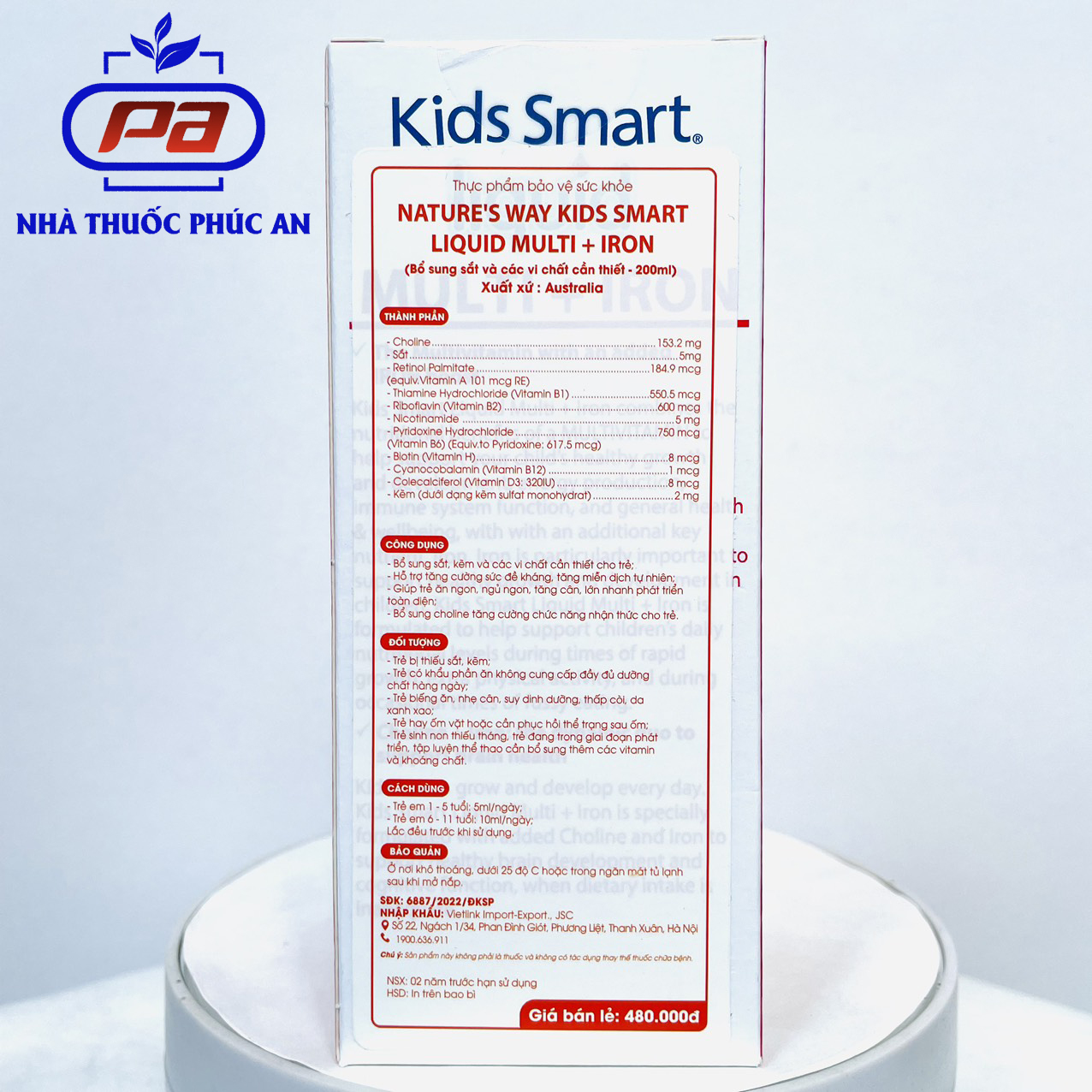 Siro bổ sung sắt cho bé từ Úc Nature Way Kids Smart Liquid Iron lọ 200ml, tăng miễn dịch, bổ máu