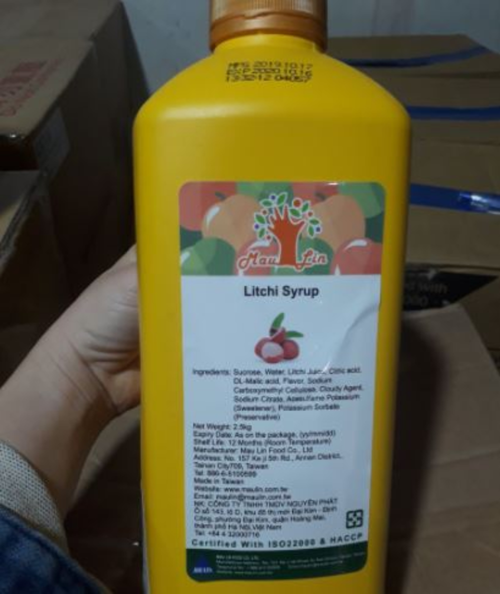 Nhà sản xuất: MAU LIN FOOD CO., LTD (Maulin là một thương hiệu công ty thực phẩm của Đài Loan. Nơi đây vốn được coi là quê hương của trà sữa. Ngày nay, Maulin đã trở thành một thương hiệu nổi tiếng về thực phẩm và đồ uống. Các sản phẩm của công ty gồm có hạt cafe, các loại bột điều vị, hạt thủy tinh dùng và đặc biệt về siro cho trà sữa. Sản phẩm của công ty đạt được chứng nhận ISO22000, HACCP, HALAL. Đây đều là các tiêu chuẩn khắt khe về quản lý cũng như VSATTP quốc tế. Thị trường phân phối sản phẩm chính của công ty là Đài Loan, Trung Quốc và khu vực Đông Nam Á. Hơn nữa, sản phẩm của Maulin cũng đang được kinh doanh tại các thị trường như Mỹ, Đức, Anh, Úc… hay Nhật Bản, Hàn Quốc)