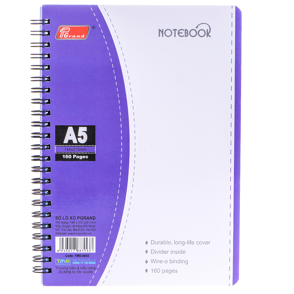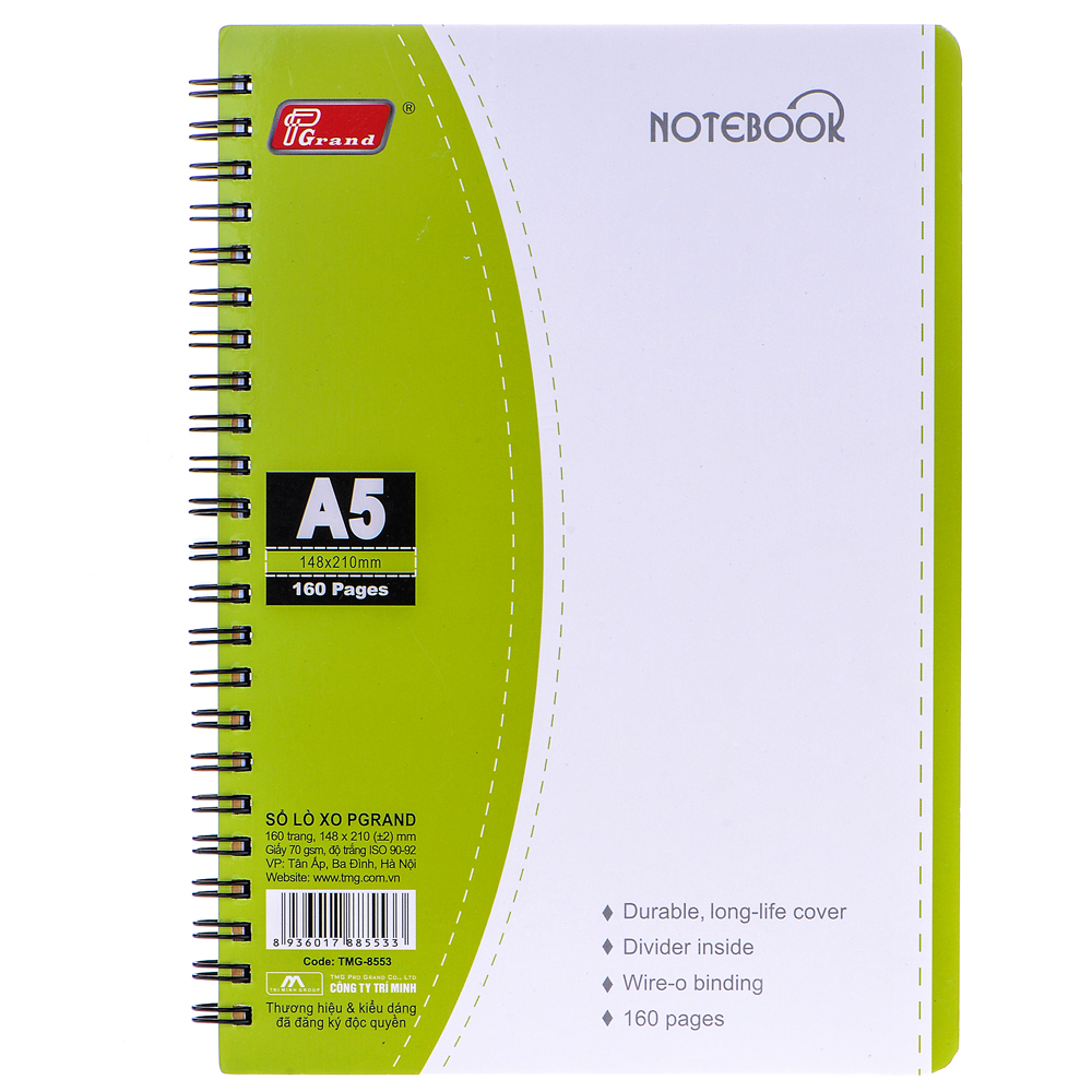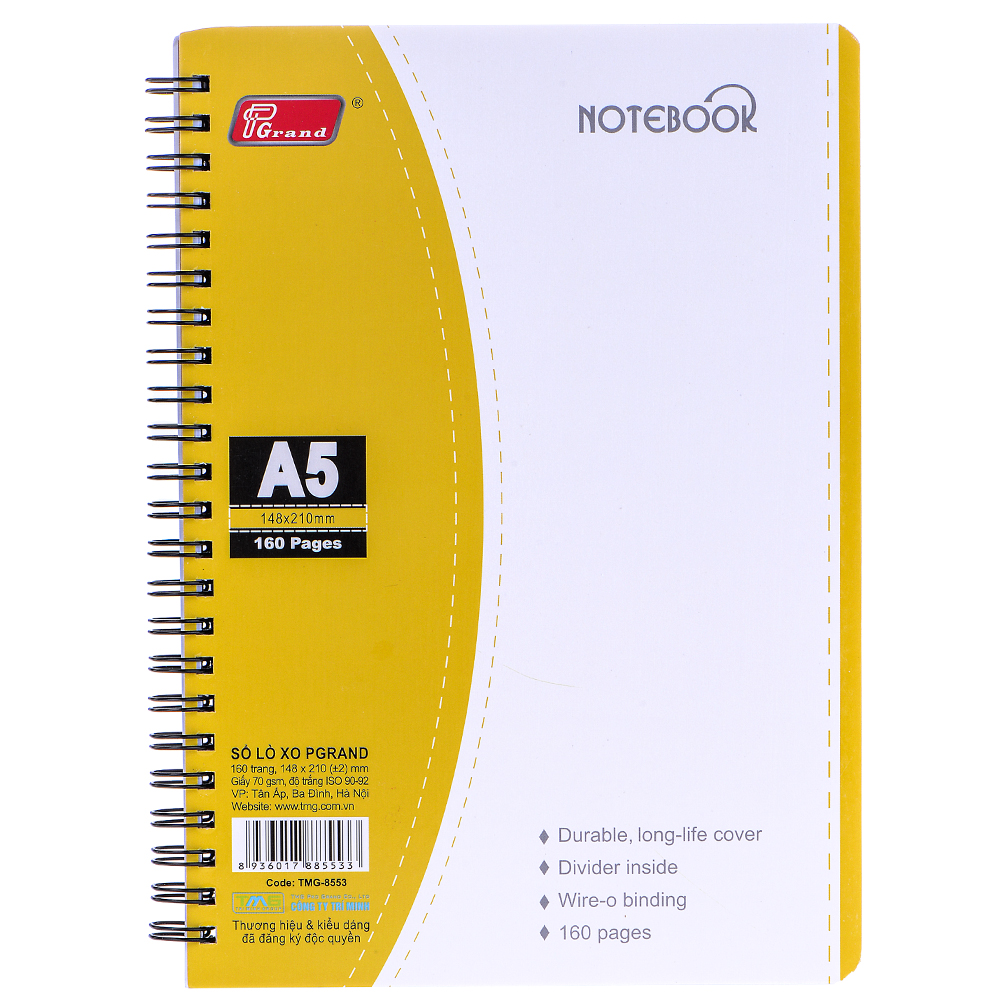 Sổ Lò Xo Grand A5 160 Trang 8553 có kích thước khổ A5, là khổ giấy vừa phải, vừa dễ dàng cho bạn khi để trong cặp, trong balo, vừa có thể dùng để ghi chép một lúc nhiều thông tin hoặc cần vẽ nhiều hoạ tiết. Sổ dày, bao gồm 160 trang với định lượng 70 gsm, phù hợp cho mọi ghi chép hằng ngày của bạn.