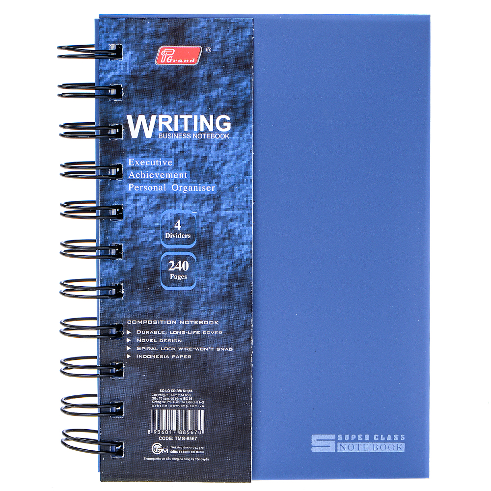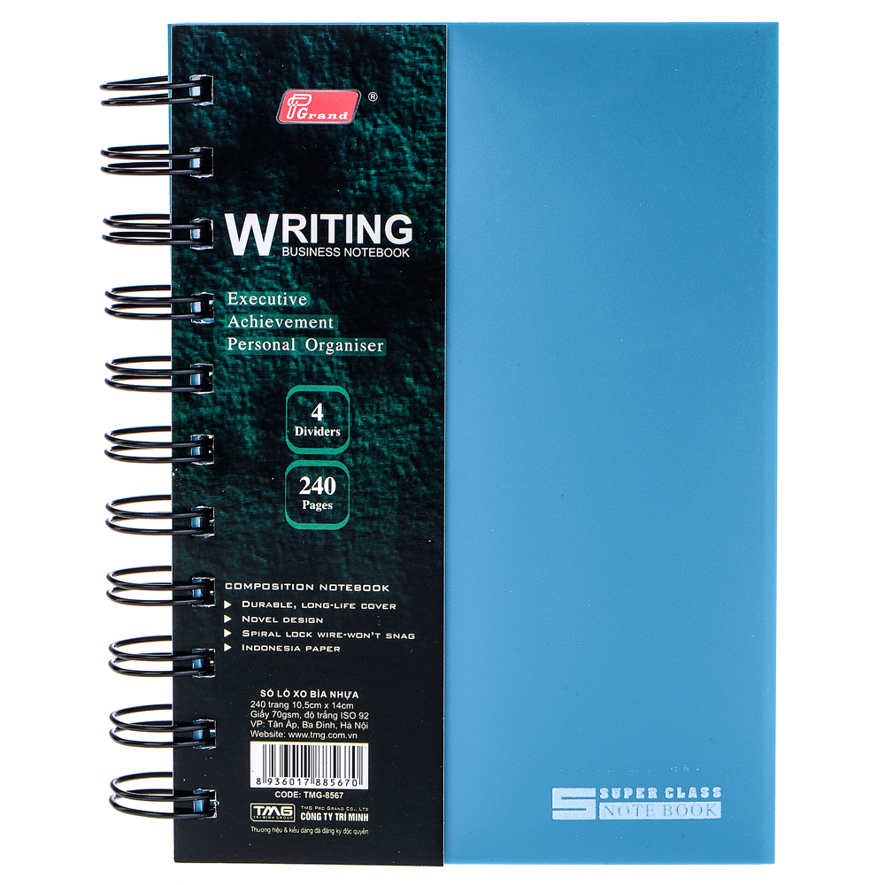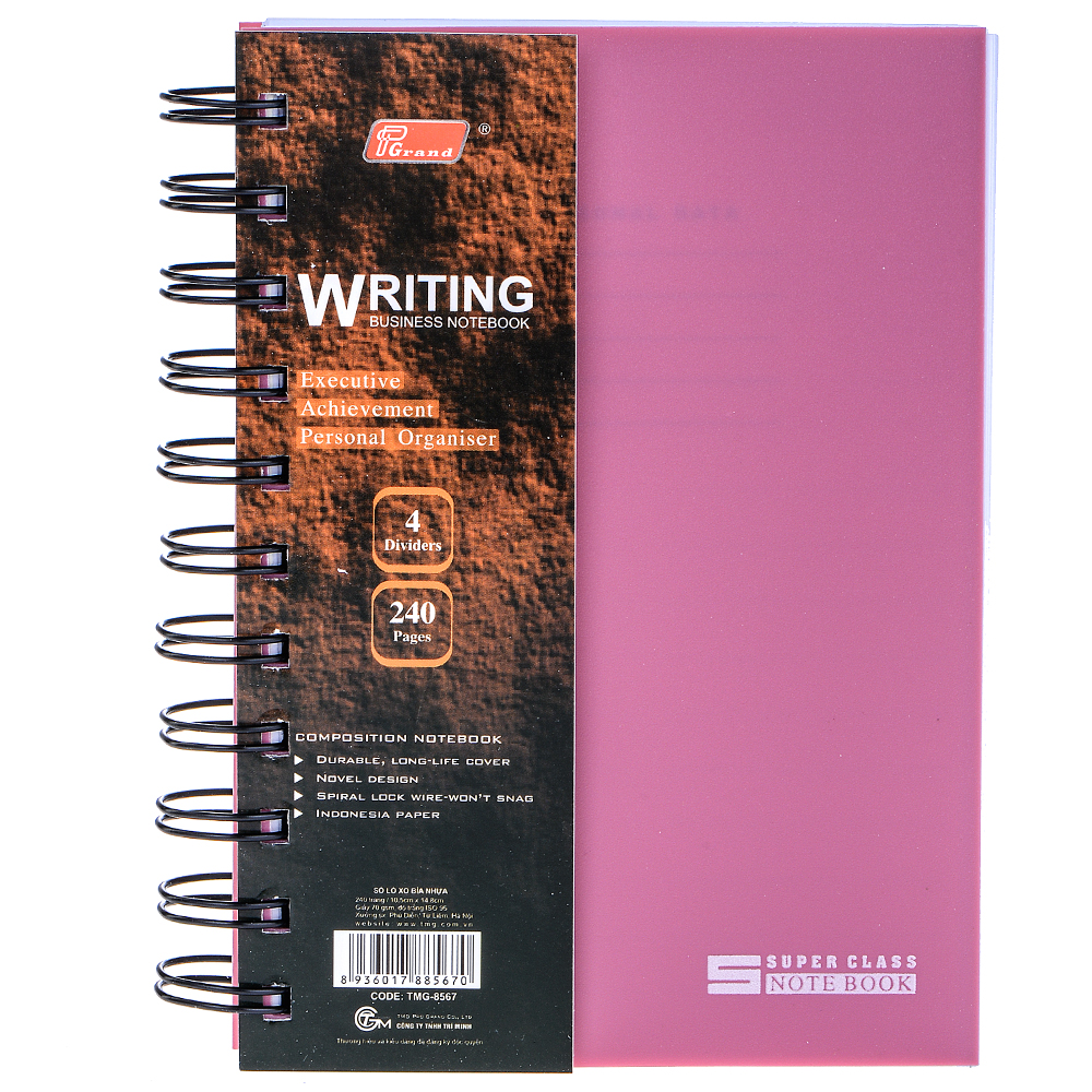 Sổ Lò Xo Grand A6 240 Trang Bìa Nhựa có kích thước khổ A6, rất nhỏ gọn, dễ dàng cho bạn khi để trong cặp, balo, túi xách nhỏ, thuận tiện mang theo mọi lúc mọi nơi. Sổ dày, bao gồm 240 trang với định lượng 70 gsm, giúp bạn sử dụng được nhiều hơn, thích hợp cho việc ghi chú, tốc kí,