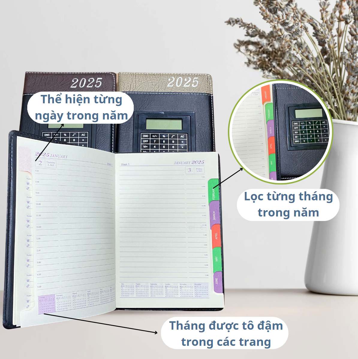 Hãy sở hữu ngay sổ da kèm máy tính để bắt đầu năm 2025 tràn đầy năng lượng và hiệu quả!