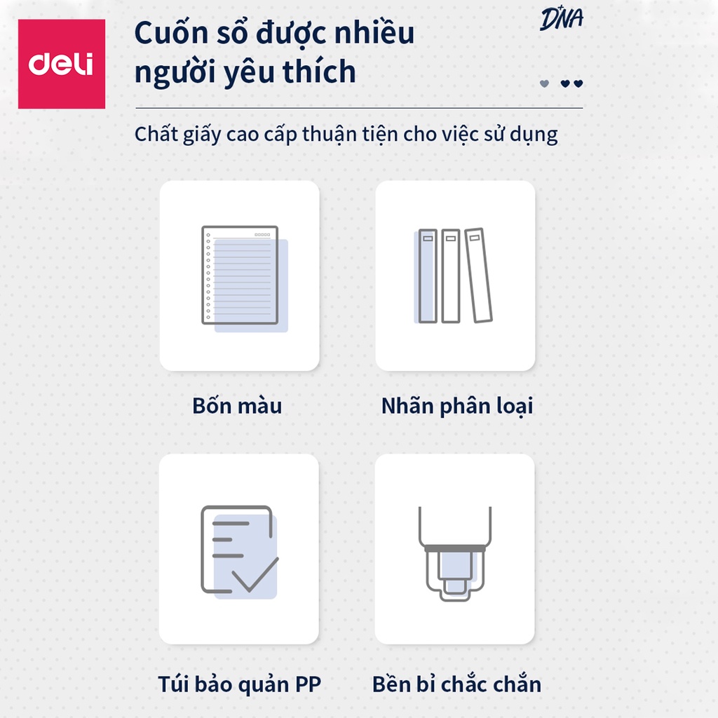 Khách hàng lựa chọn các sản phẩm của @Delivietnam sẽ được cam kết: Sản phẩm chính hãng từ nhà máy Deli, nguồn gốc rõ ràng và chất lượng đạt tiêu chuẩn.