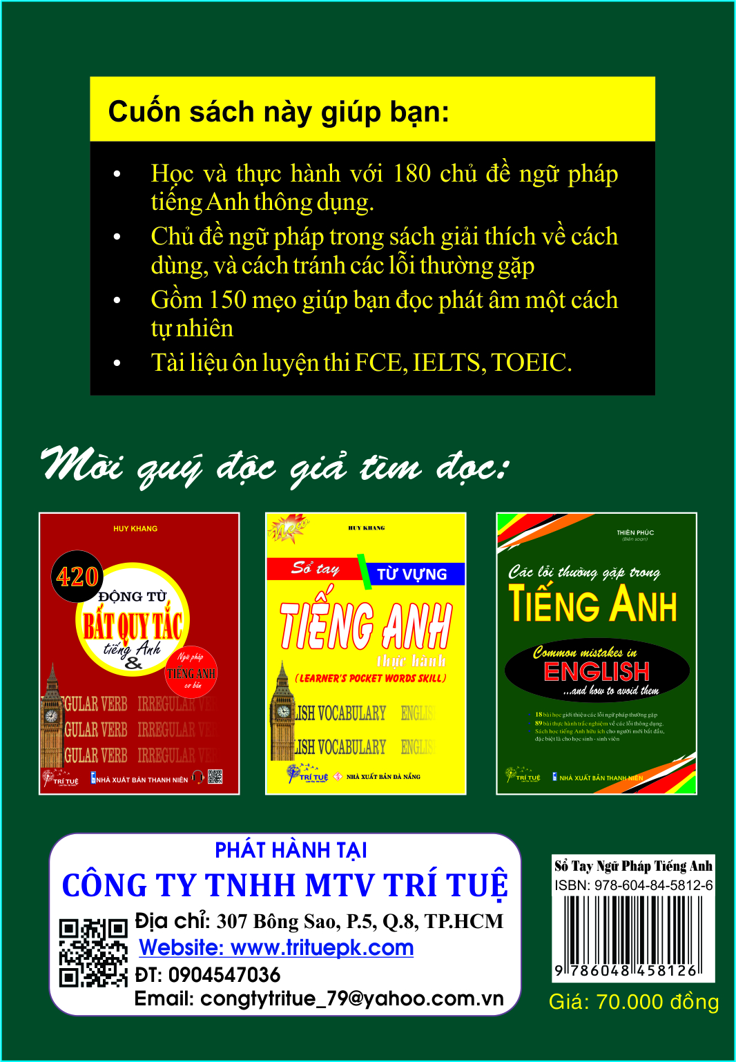 Để đáp ứng nhu cầu học tiếng Anh ngày càng nâng cao của học sinh, chúng tôi phát hành cuốn NGỮ PHÁP TIẾNG ANH (dành cho học sinh), một ấn bản được biên soạn dựa