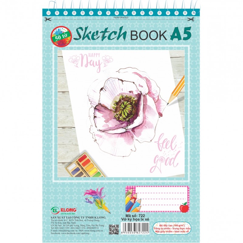✨Sổ vẽ KLONG ký họa lò xo xé 50 tờ A5 Sketch; MS: 722