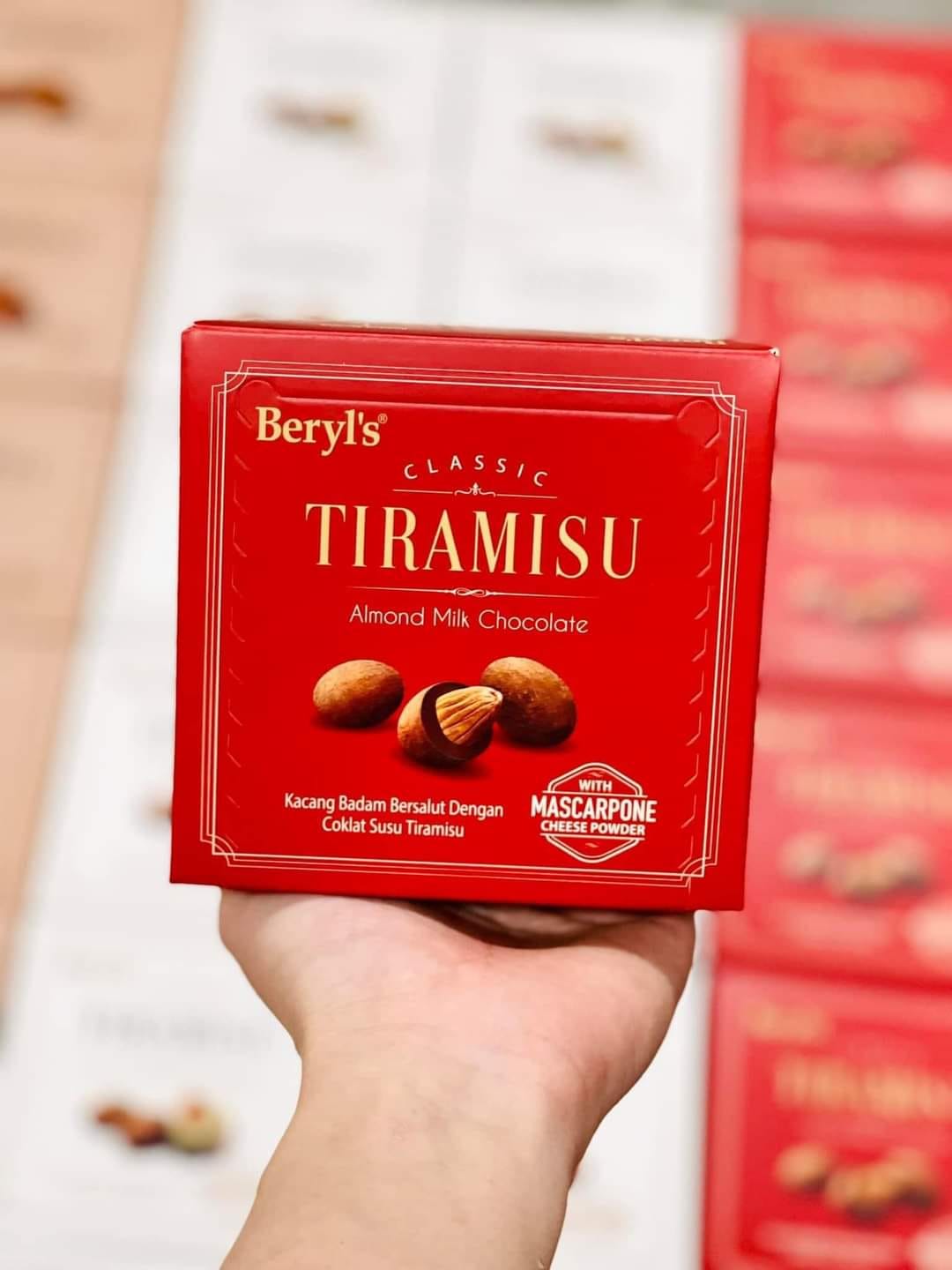Socola Hạnh Nhân Tiramisu Beryl's Xuất xứ: Malaysia Thương hiệu: Beryl's Hsd: 18 tháng kể từ ngày sản xuất ️Thành phần: Đường, sữa bột nguyên kem, hạt hạnh nhân, ca cao miếng, dầu thực vật,
