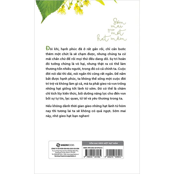 Bằng lời văn nhẹ nhàng, cô đọng, Sớm mai gieo một hạt mầm là quyển sách sẽ giúp các bạn tìm được hướng đi cho riêng mình cũng như sẽ có một cuộc sống tốt hơn, một ánh nhìn cảm thông hơn, đầy yêu thương hơn đối với mọi người xung quanh.
