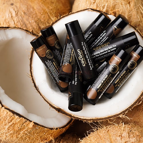 Công dụng • Son dưỡng có mùi thơm tự nhiên từ dầu dừa Bến Tre giúp dưỡng ẩm, bảo vệ và chống khô môi do thời tiết. Nhờ vào kết cấu mỏng nhẹ và không quá