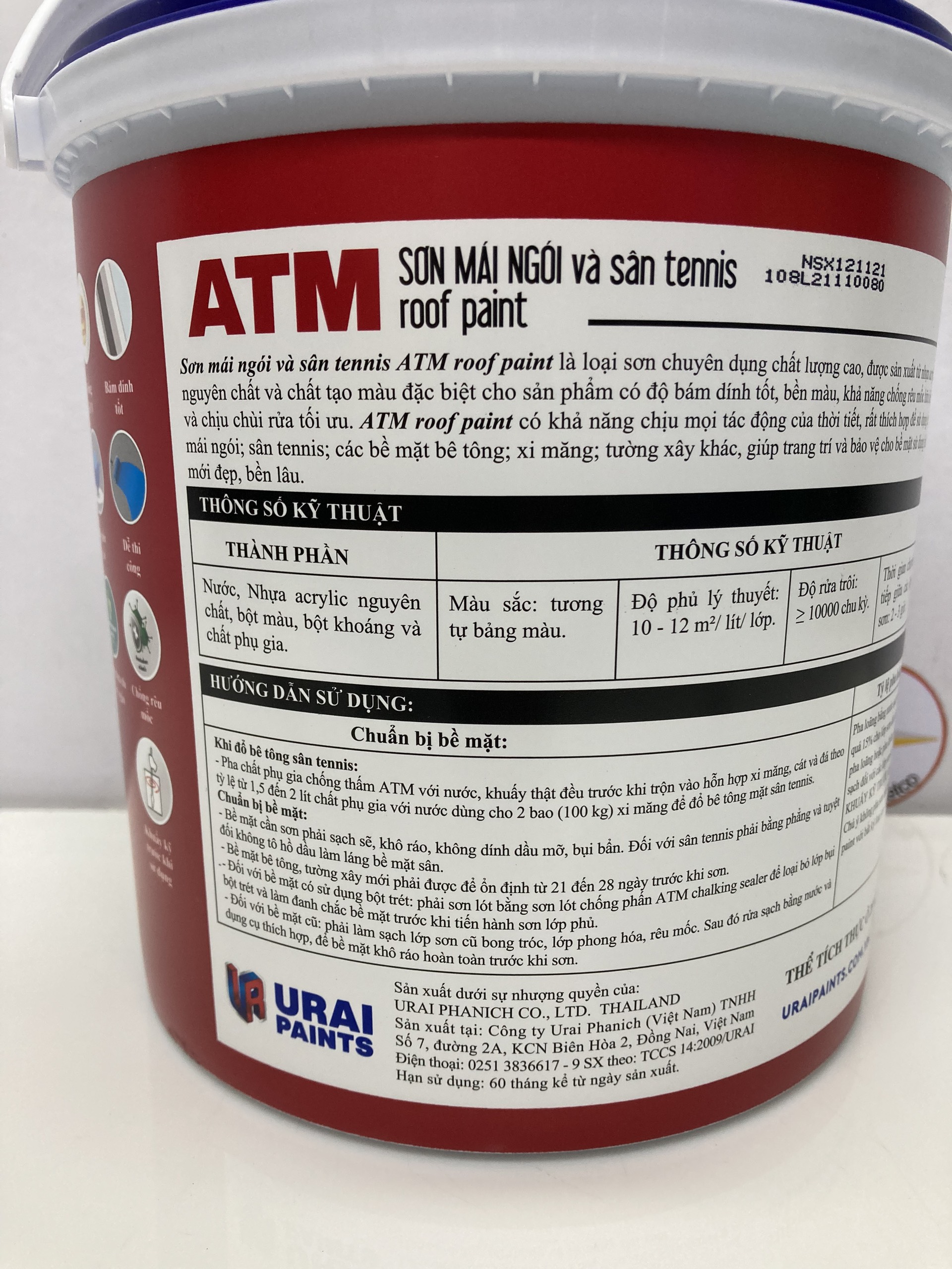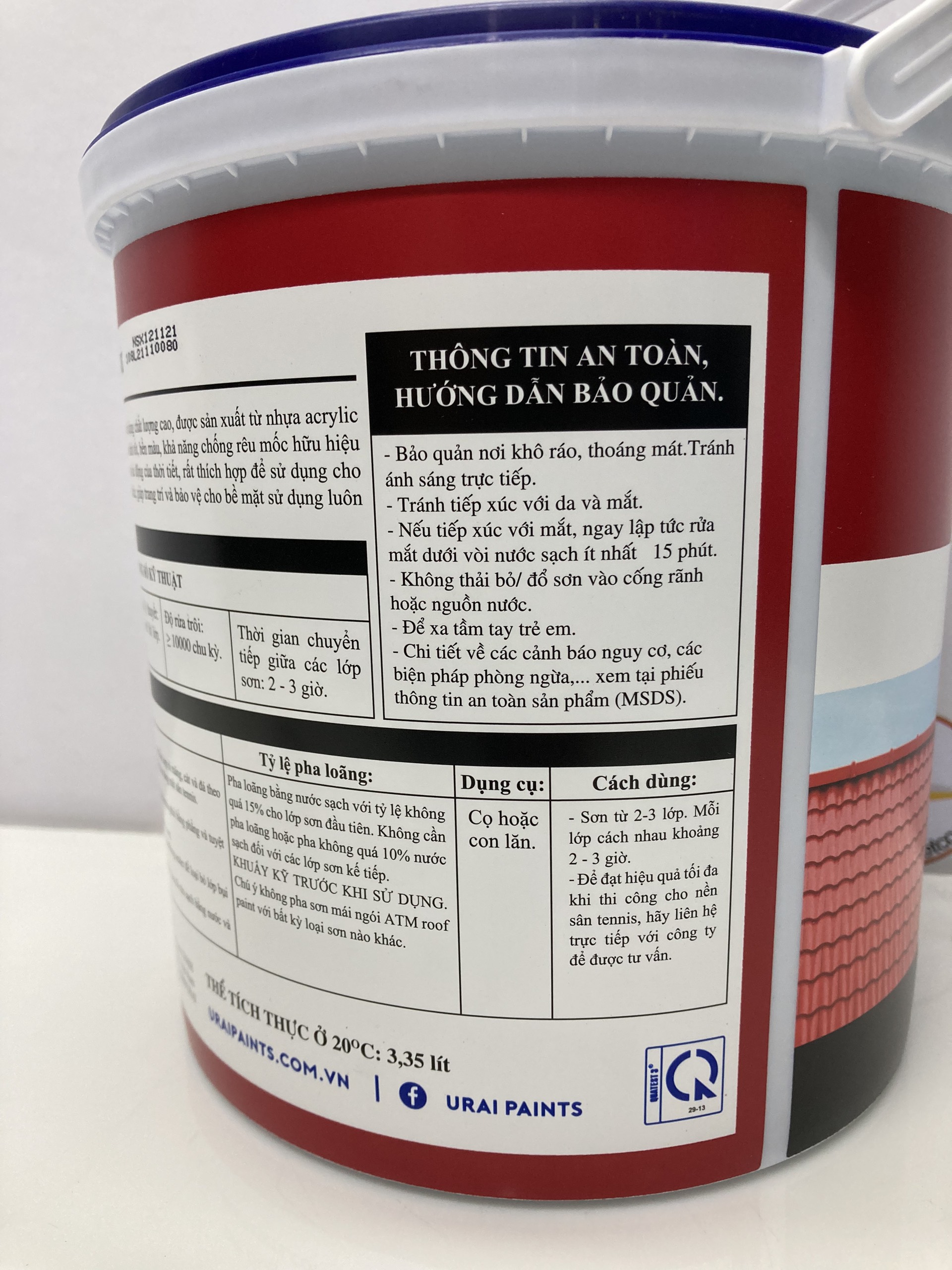 - ( 60 - 65 miếng ngói có kích thước 1.2 m x 0.6 m ) . Khuấy đều trước khi sử dụng Đóng Gói: 3.35L; 17.5L Sản phẩm được phân phối bởi Công ty TNHH Lộc Nam Việt 1933 QL 51, Phước Tân, Biên Hòa, Đồng Nai 0948 79 5588
