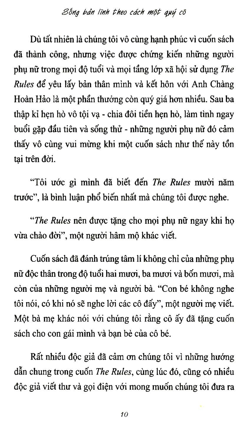 Luôn luôn có những cách để bạn cân bằng với những mối quan hệ xung quanh, ở tất cả mọi trường hợp. Nếu bạn chưa biết, đó là do bạn chưa đọc All the Rules – Sống bản lĩnh theo cách một quý cô mà thôi.